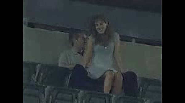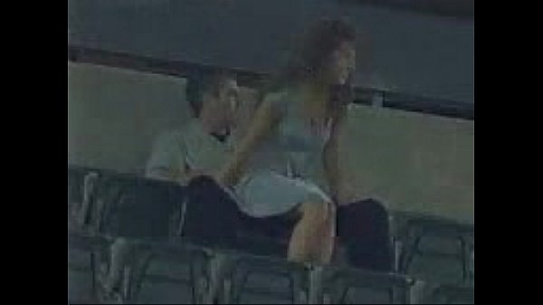 Молодая парочка пришла на стадион, посмотреть на тренировку любимой команды. Они уселись на заднем ряду и, полагая, что более никого нет поблизости, решили втихаря поразвлечься. Девушка была одета в легкое платьице. Она сняла с себя трусики и уселась парню на колени, после чего переместилась на его член и начала аккуратно двигаться на нем. Они постоянно оглядываются по сторонам, чтобы никто не увидел.
